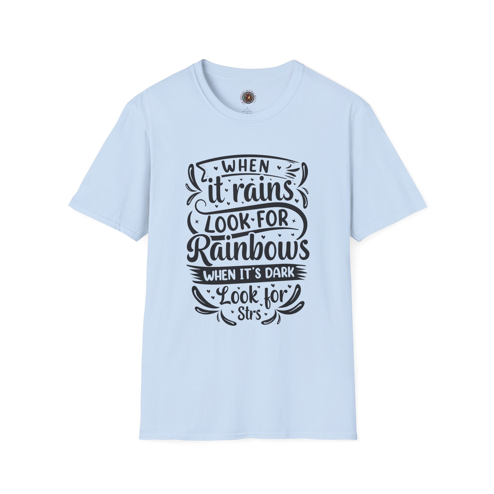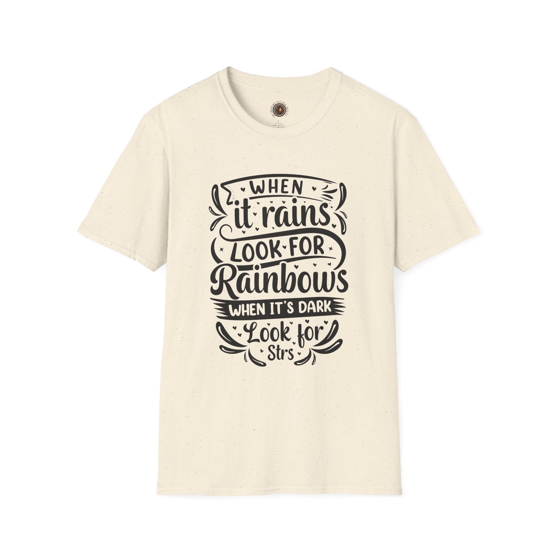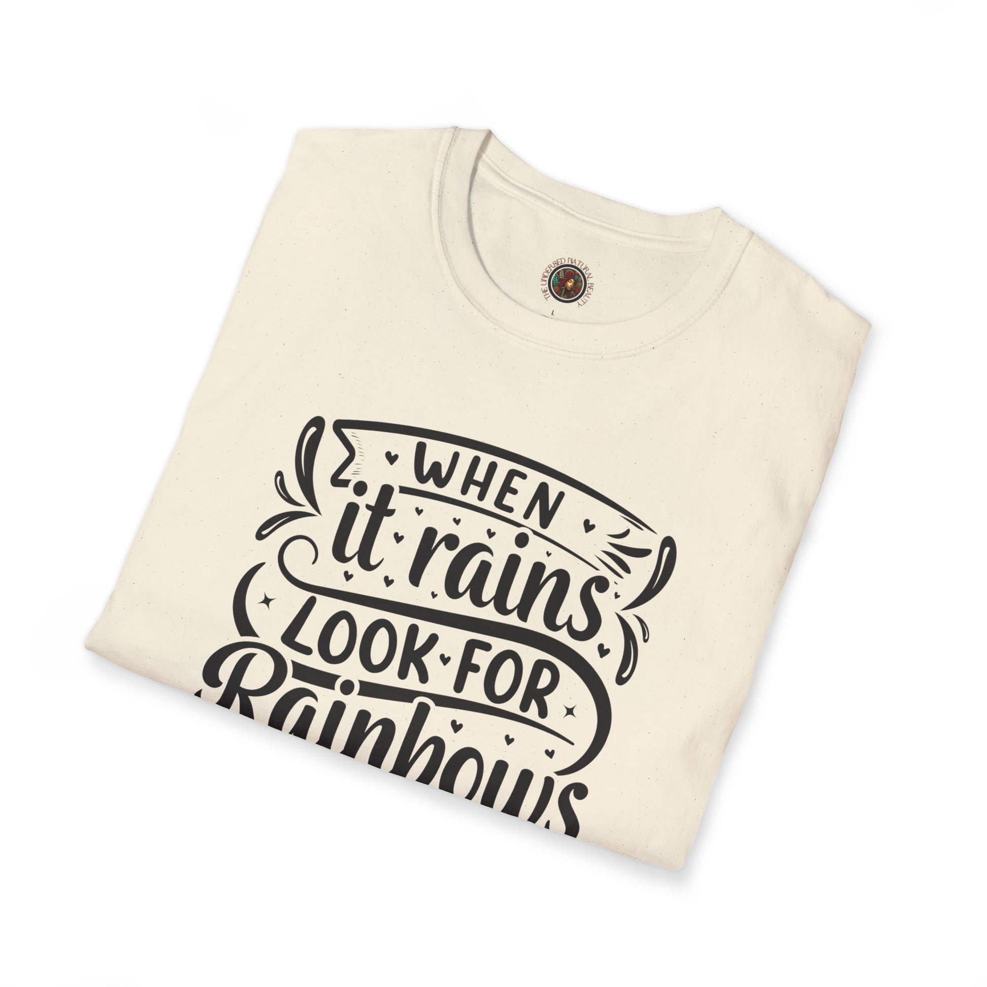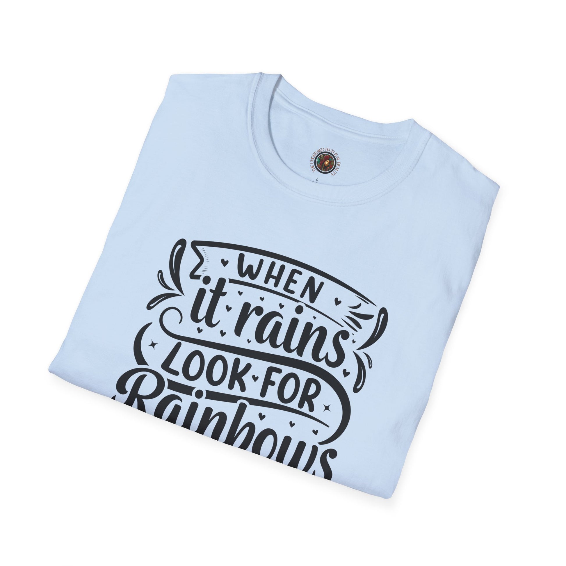Inspirational Graphic T-Shirt — "When It Rains Look For Rainbows / The Undressed Natural Beauty"