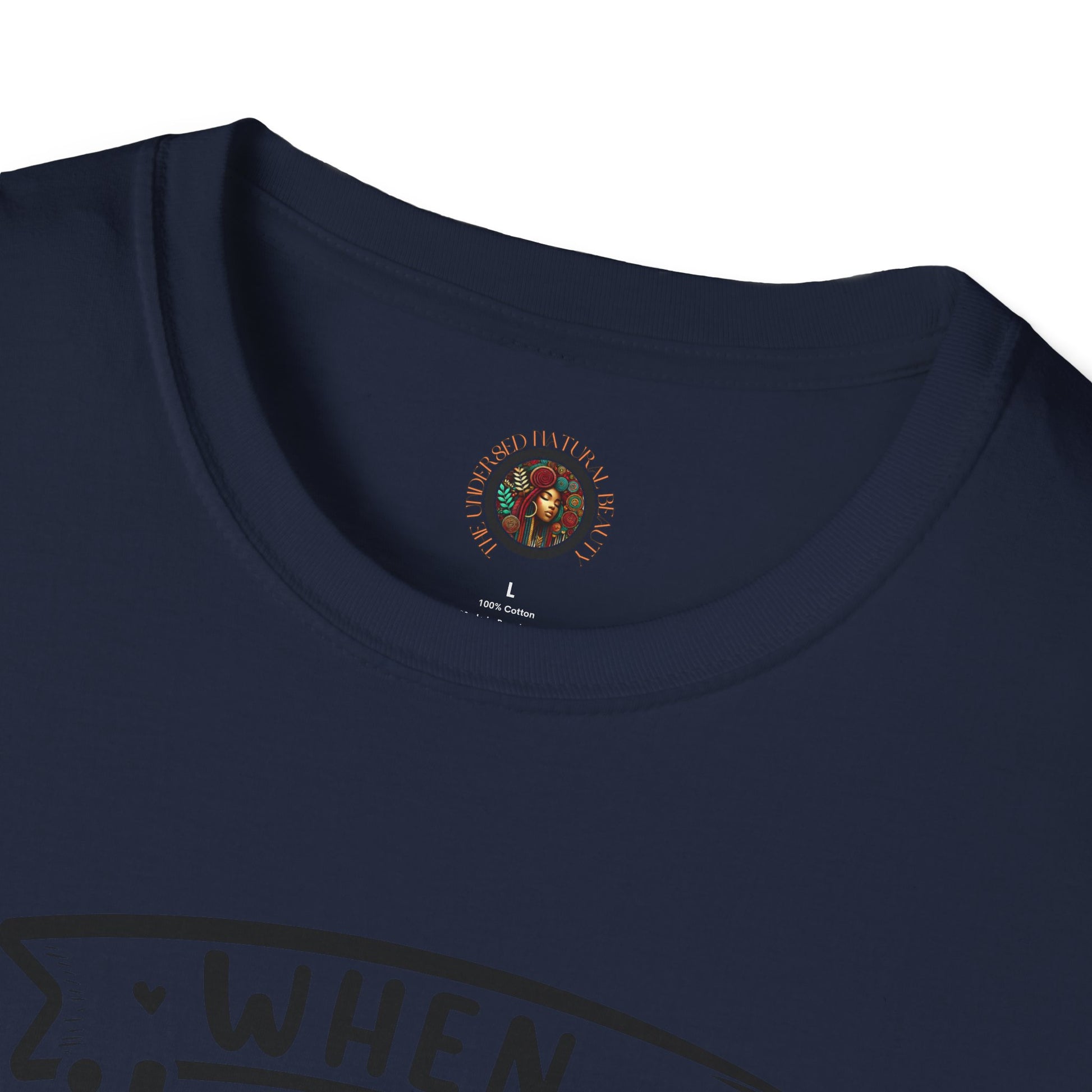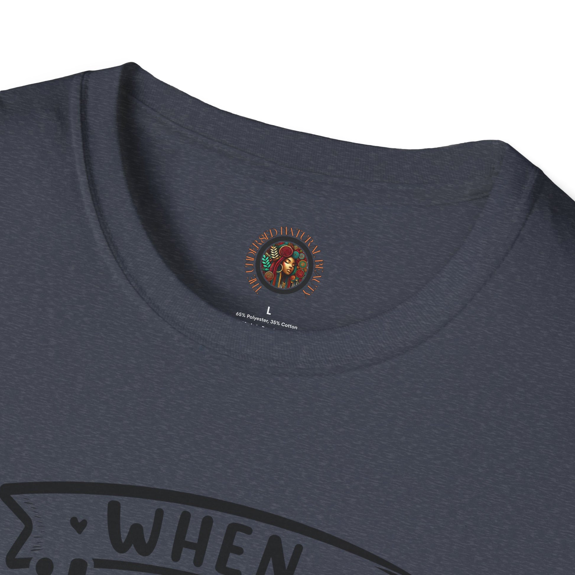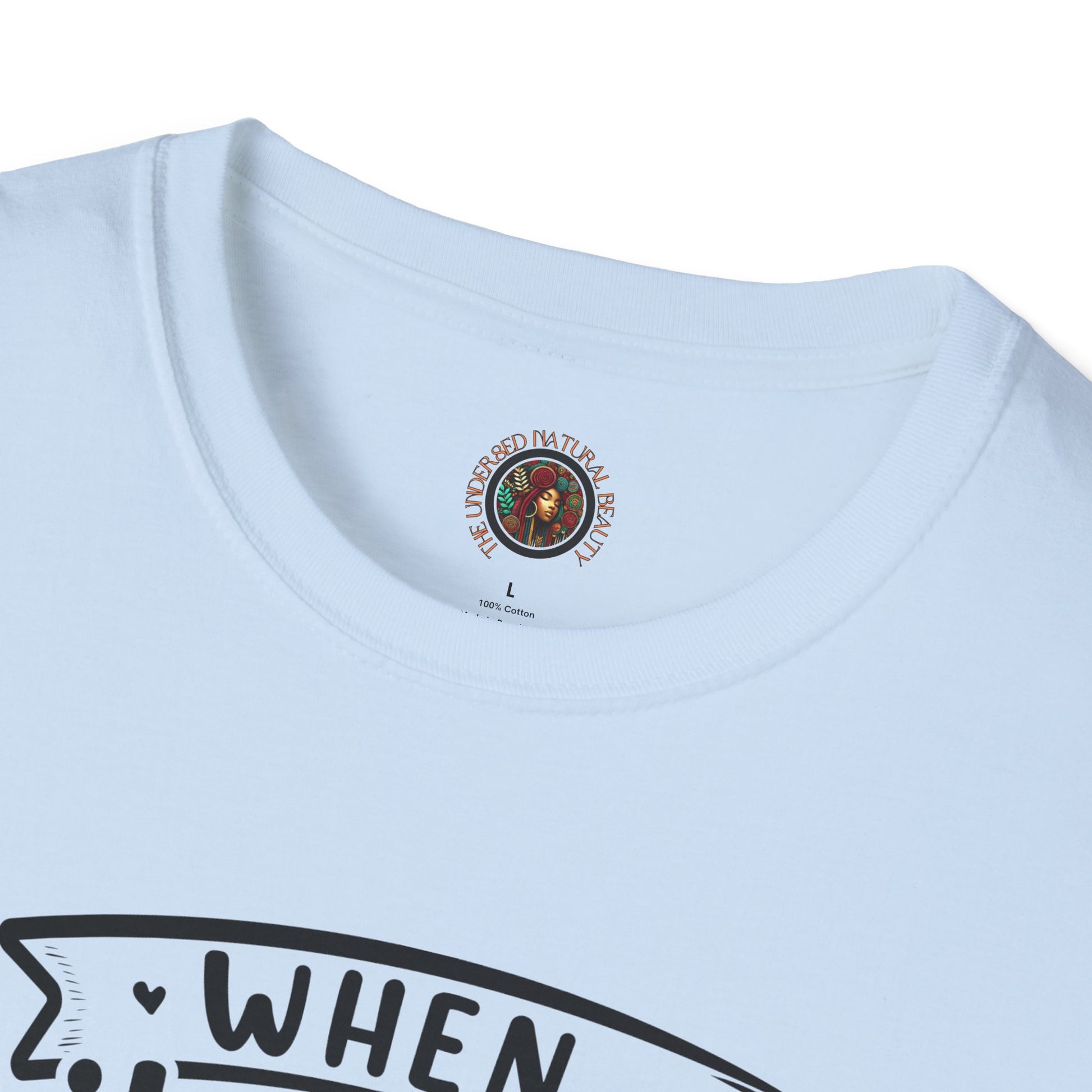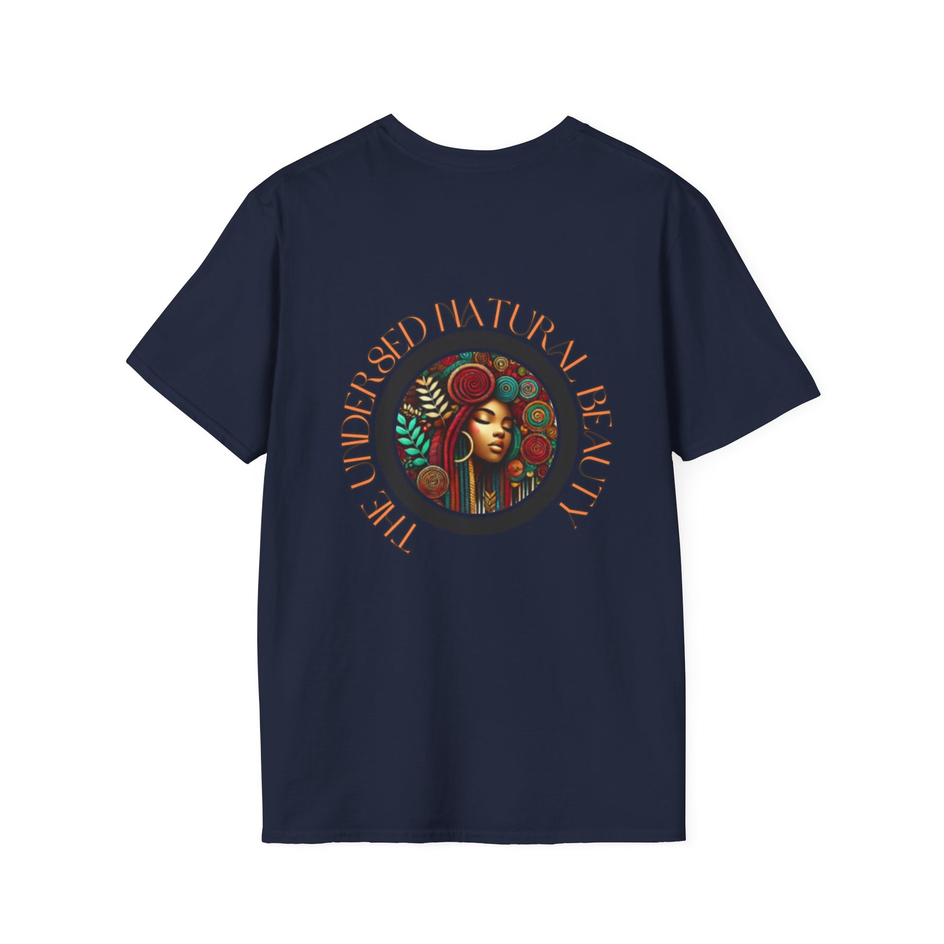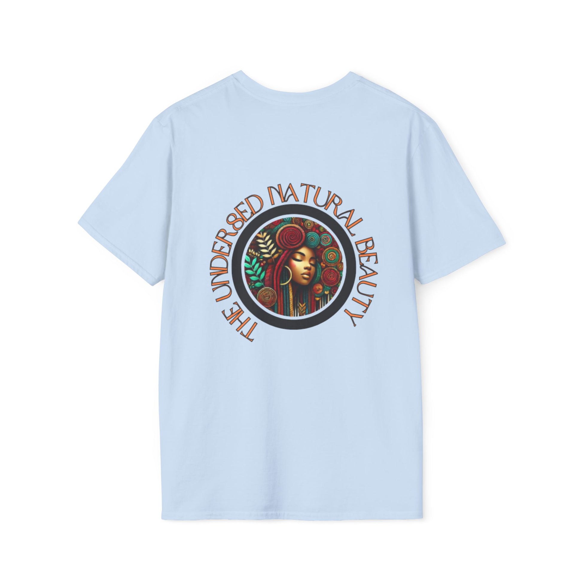 Lightweight, breathable, and built for everyday wear — this softstyle tee carries artful messages that sit comfortably in your daily rotation. The front features an uplifting hand-lettered quote about rainbows and stars, while the back shows a warm, earthy illustration framed by the words "The Undressed Natural Beauty." It feels lived-in without losing shape thanks to ribbed collar and shoulder tape, and the smooth ring-spun cotton surface keeps prints crisp. Wear it layered under a jacket for cool mornings or on its own when you want to let the design do the talking.